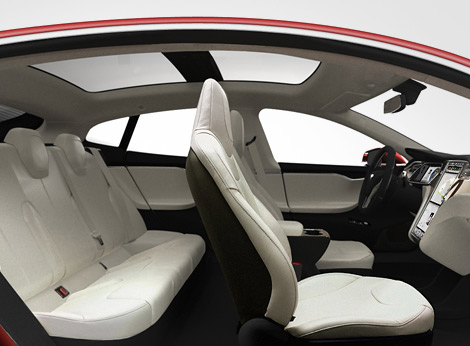 Одной из особенностей интерьера Tesla Model S является 17-дюймовые сенсорный экран мультимедийной системы на центральной консоли. Система имеет доступ в интернет по сетям 4G, использует для навигации карты Google Earth, оснащена голосовым управлением и возможность подключения iPhone и смартфонов на базе ОС Android.